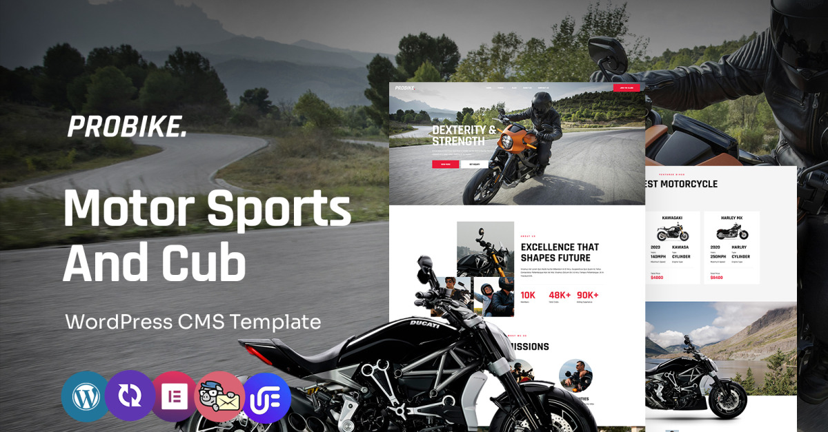 Probike - víceúčelové téma WordPress Elementor pro motoristický sport a mládě