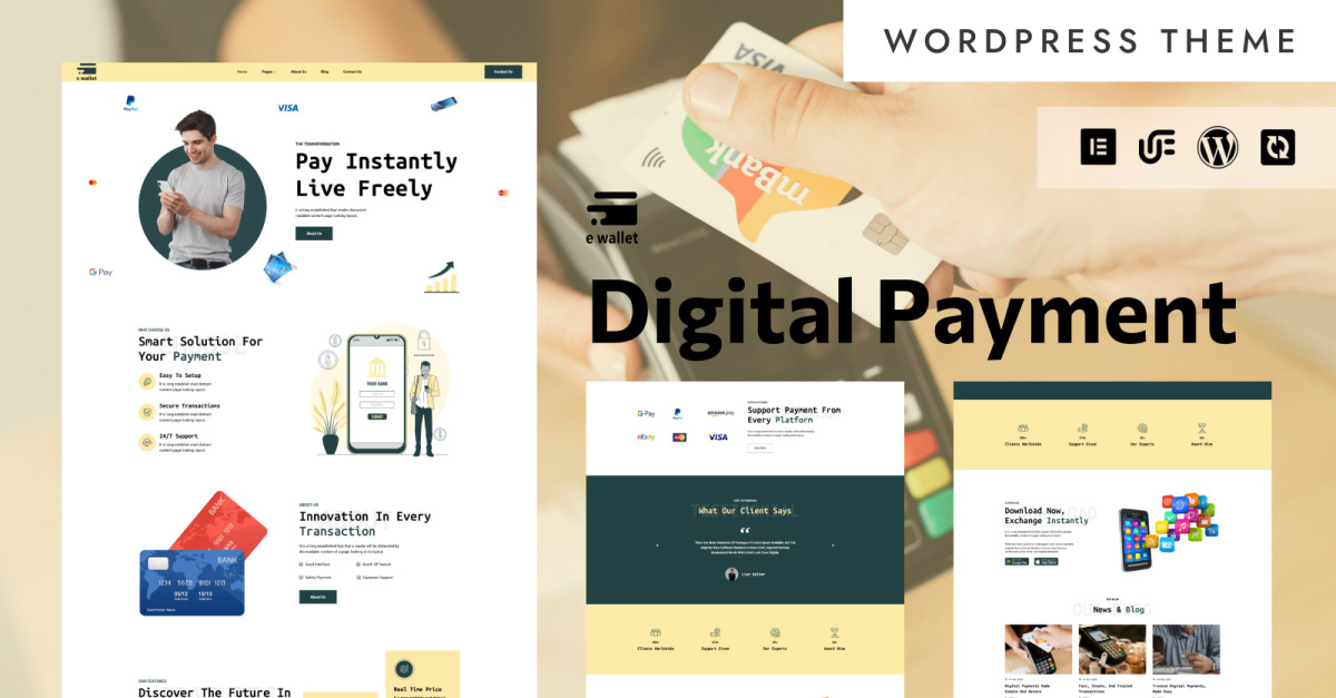 E Wallet - Šablona WordPress Elementor pro digitální bankovnictví a platby kartou