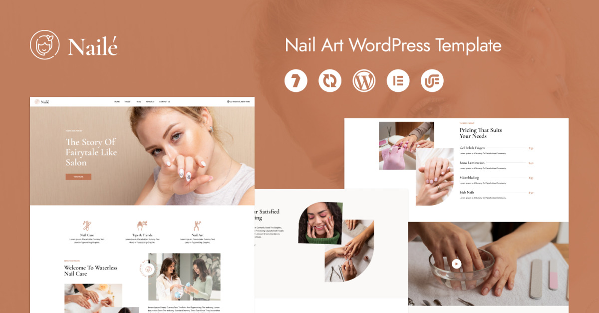 Nailé - šablona WordPress Elementor pro minimalistické WordPress šablony pro nehtové umění a krásu
