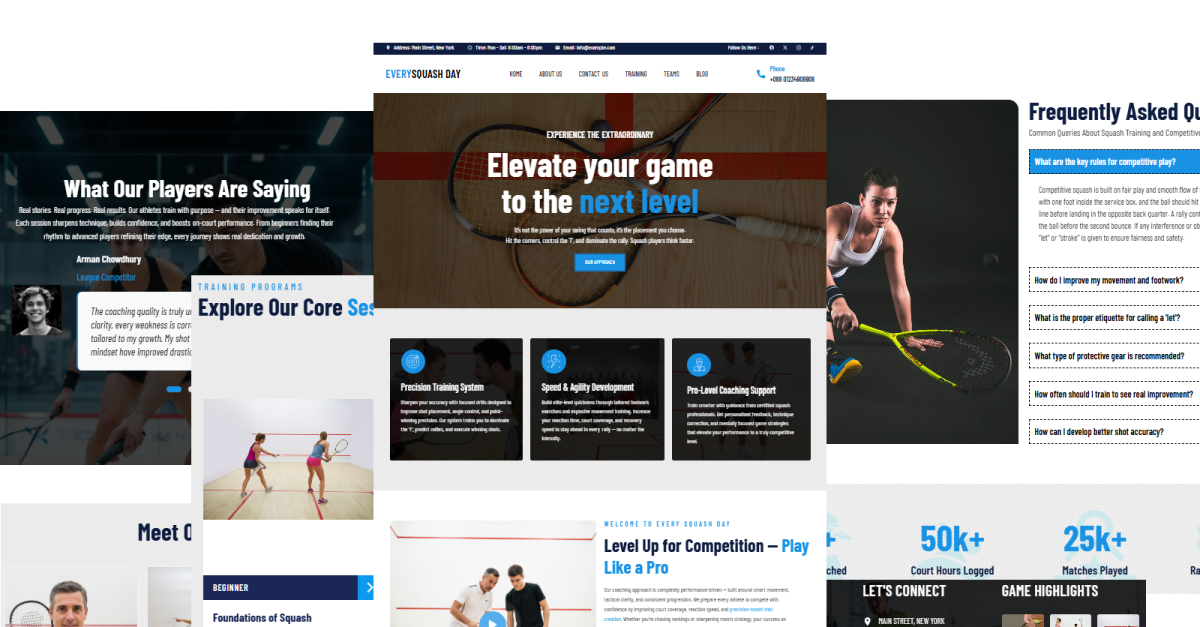 Každý den squashe - Šablona WordPress navržená pomocí Elementoru