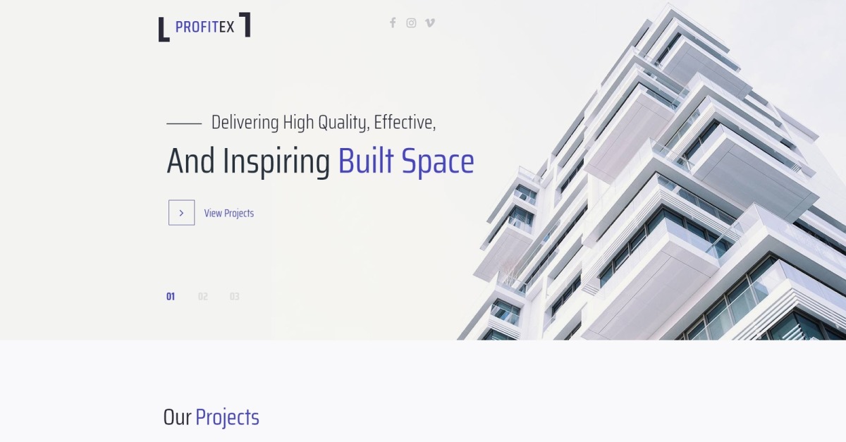 Profitex - Šablona WordPress Elementor s motivem Bright Architecture Agency