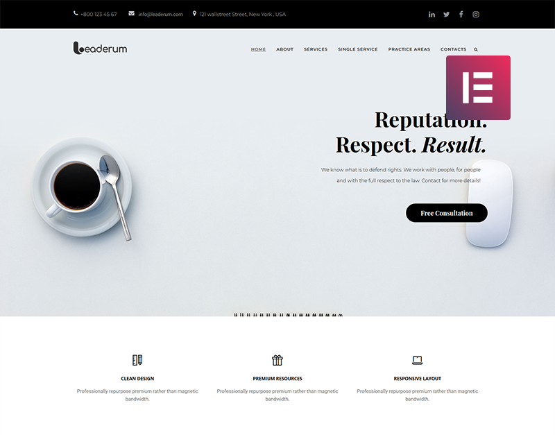 Leaderum - Minimální téma WordPress Elementor Theme