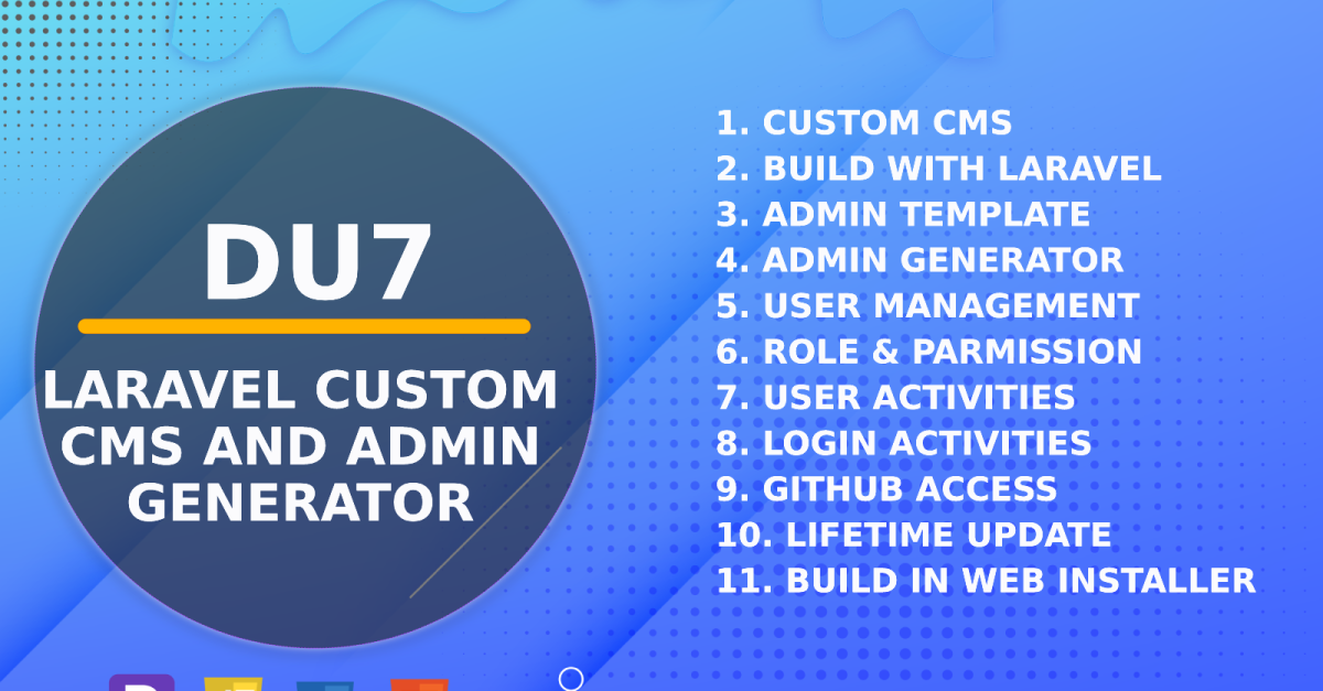 DU7 ist ein Laravel Backed (Bedienfeld). Benutzerdefiniertes Laravel-CMS mit allen Optionen, die Sie zum Erstellen einer beliebigen Website benötigen. Sie können jede Art von Website einfach integrieren