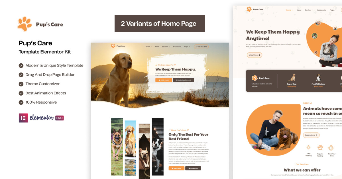 Pup's Care - Pets House Gebrauchsfertiges Elementor-Kit