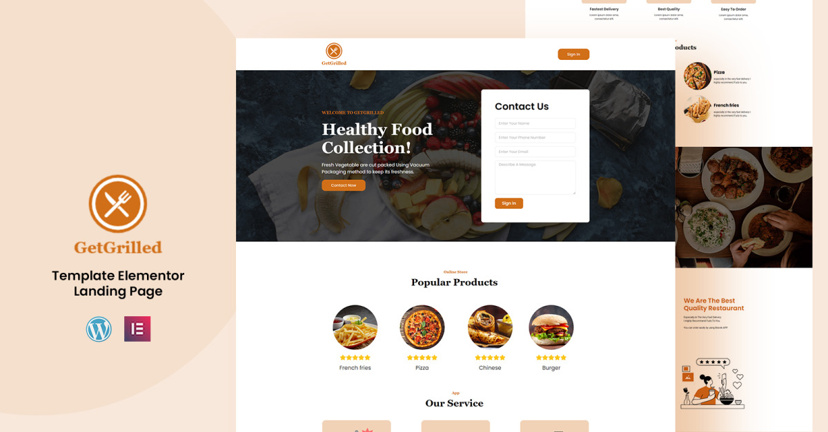 GetGrilled - Restaurantdienste Elementor Landing Page