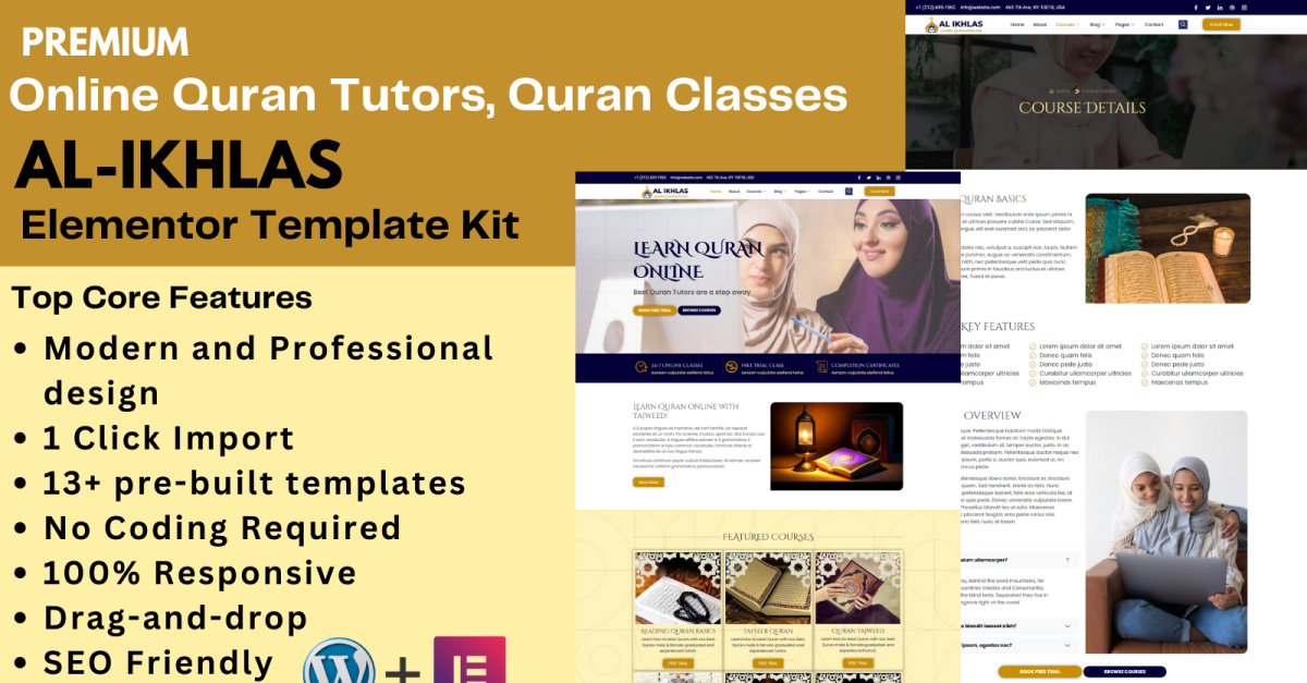 Al-Ikhlas – Online-Koran-Lehrer, Online-Koran-Kurse, Elementor-Vorlagen-Kit WordPress