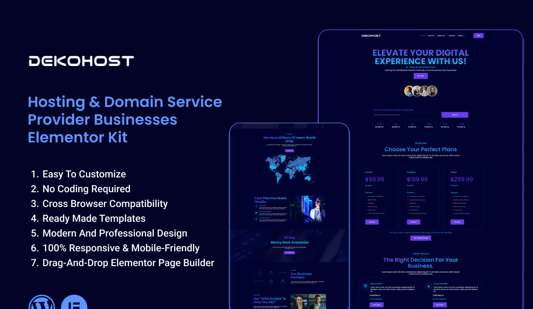 Dekohost – Elementor-Vorlagenkit für Anbieter von Hosting- und Domänendiensten