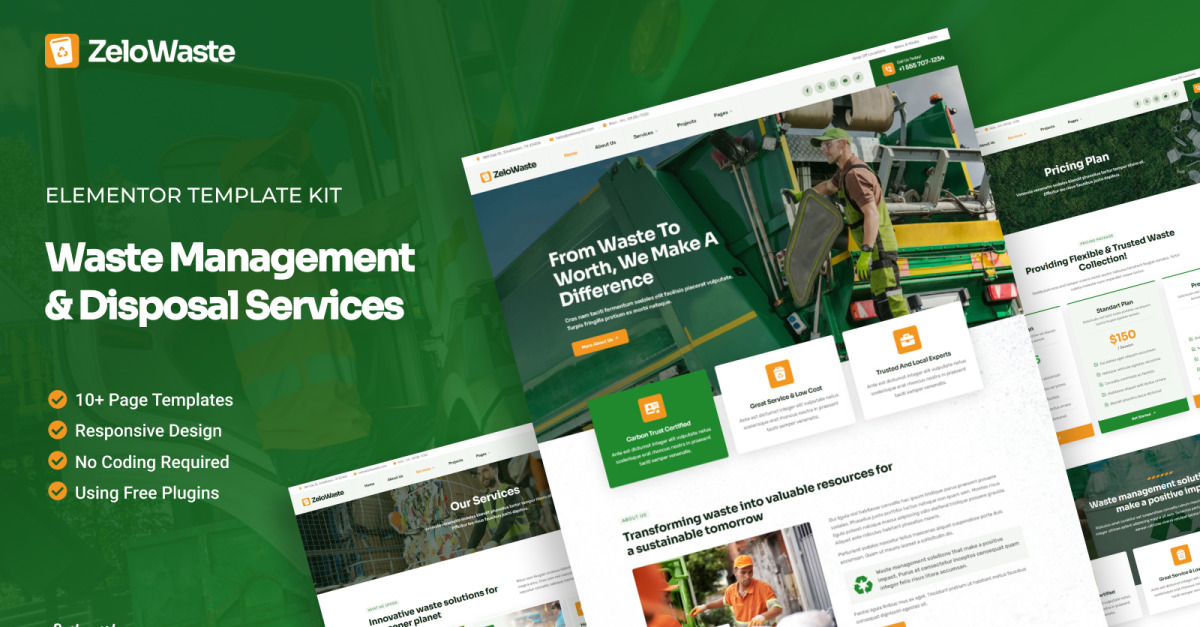 ZeloWaste – Elementor-Vorlagenkit für Abfallmanagement und -entsorgung
