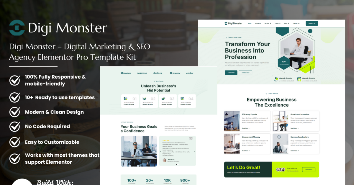 Digi Monster – Elementor Pro Template Kit für Agenturen für digitales Marketing und SEO