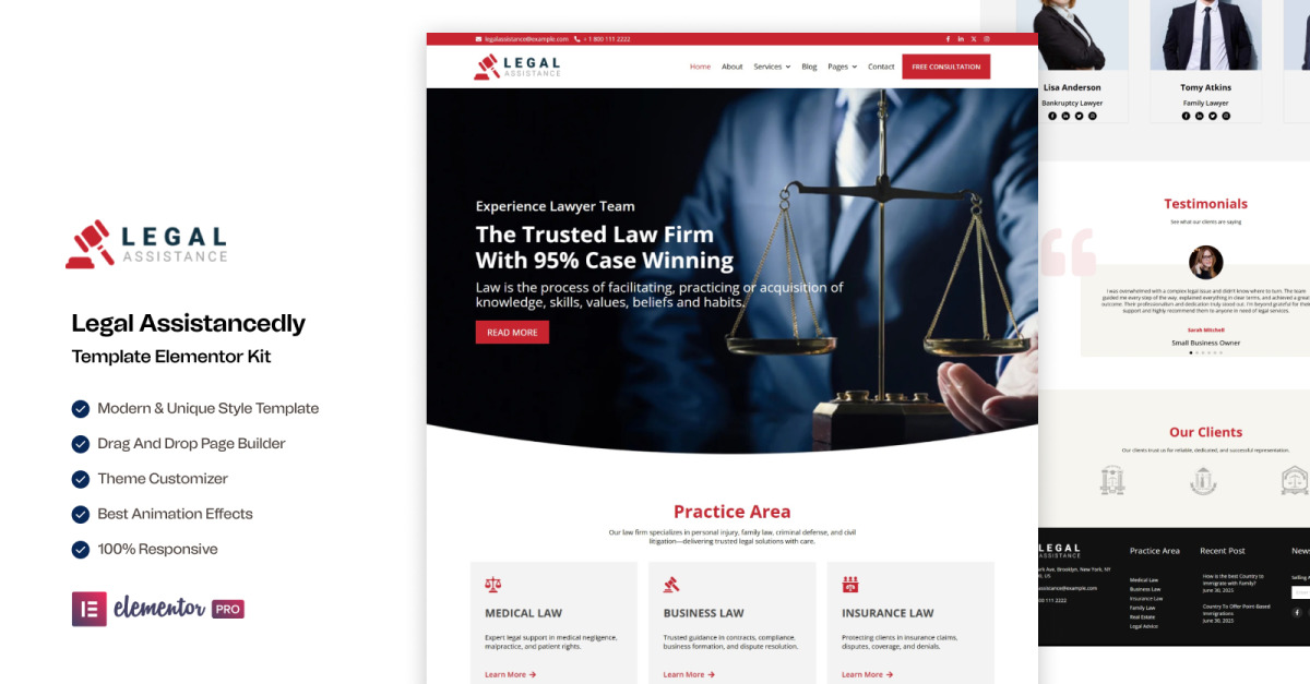 Rechtshilfe – Mehrseitiges Elementor-Kit für Anwaltskanzleien und Rechtsberater