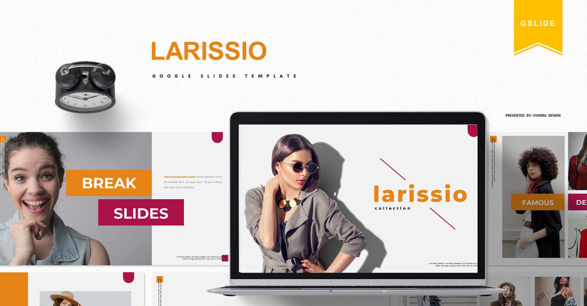 Das ist **Larissio | Google Slides-Vorlage** - Holen Sie es sich jetzt!, eine großartige Google Slides-Vorlage für alle geschäftlichen oder persönlichen Anforderungen.