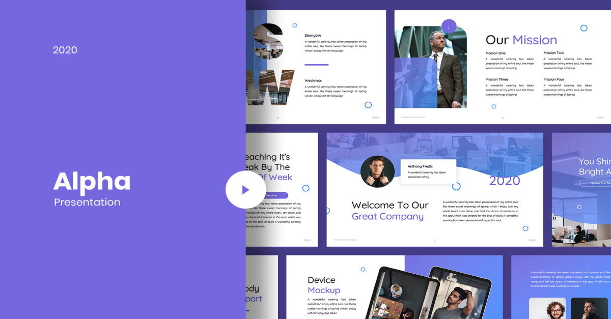 Die Alpha-Präsentationsvorlage ist eine vielseitige Vorlage, die für die Präsentation Ihres Geschäftsberichts, kreativer Ideen, Startup-Projekte, Bildung und vieles mehr verwendet werden kann. Holen Sie sich die Aufmerksamkeit Ihres Publikums mit unserem professionellen und modernen Design für bessere Ergebnisse. Viele Möglichkeiten unserer Vorlage, um Ihren Präsentationsideen zu entsprechen und viel Zeit bei der Präsentation zu sparen. Diese Vorlage ist einfach zu verwenden, sodass Sie sie problemlos bearbeiten können.
