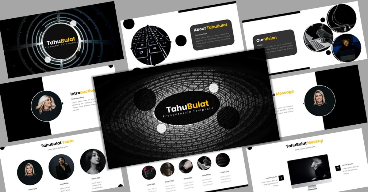 TahuBulat - Google Slides-Vorlage für kreative Unternehmen – Holen Sie es sich jetzt! Alle Elemente in dieser Vorlage können von Google Slides aus bearbeitet werden, es ist keine andere Software erforderlich. Bearbeiten Sie sie einfach auf Google Slides, geben Sie Ihre Inhalte ein, ersetzen Sie Ihr Bild durch einen Platzhalter, ändern Sie die Farbe und präsentieren Sie Ihre Folien der Welt, Prost :)