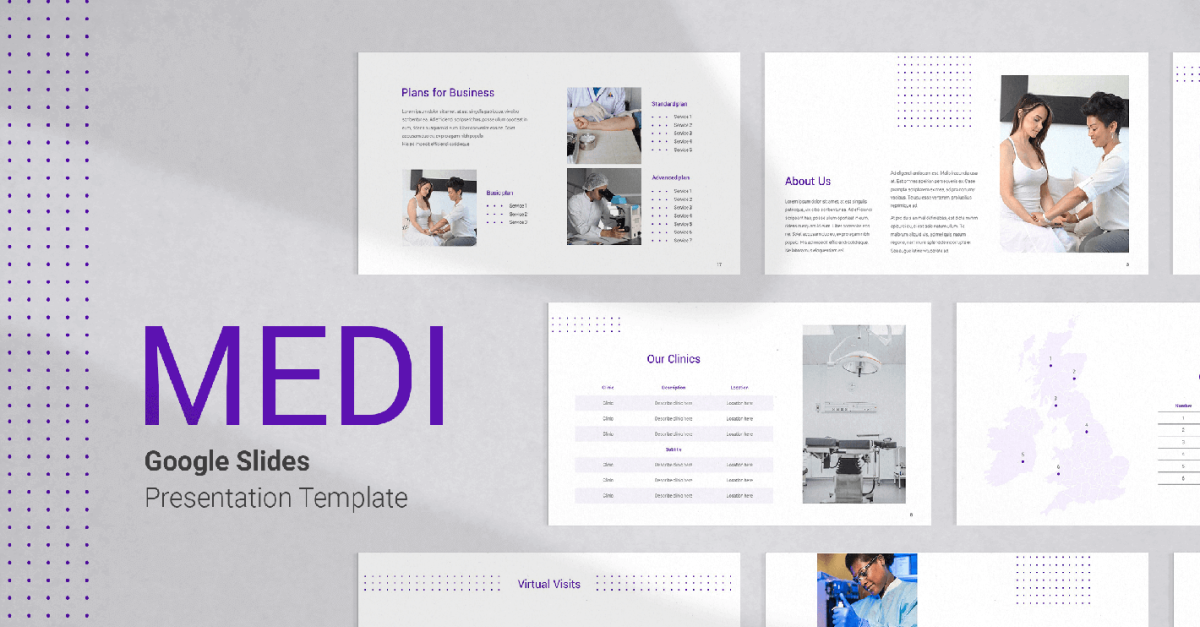 Die Medi-Krankenversicherungs-Präsentationsvorlage für Google Slides ist eine moderne und elegante professionelle Präsentation, die Ihren Geschäftstreffen und Vorträgen Auftrieb verleiht. Es enthält 30 wunderschön gestaltete Folien, die einfach bearbeitet und an alle Ihre beruflichen und geschäftlichen Anforderungen angepasst werden können.