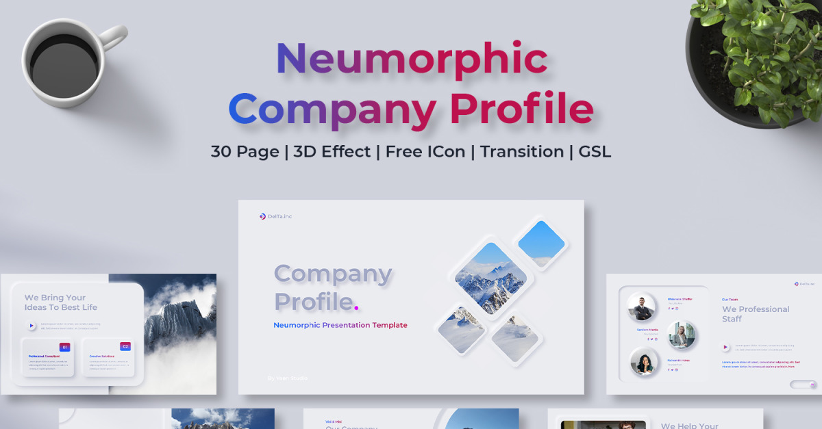 Einführung in die neumorphische Google Slides-Vorlage „Unternehmensprofil“