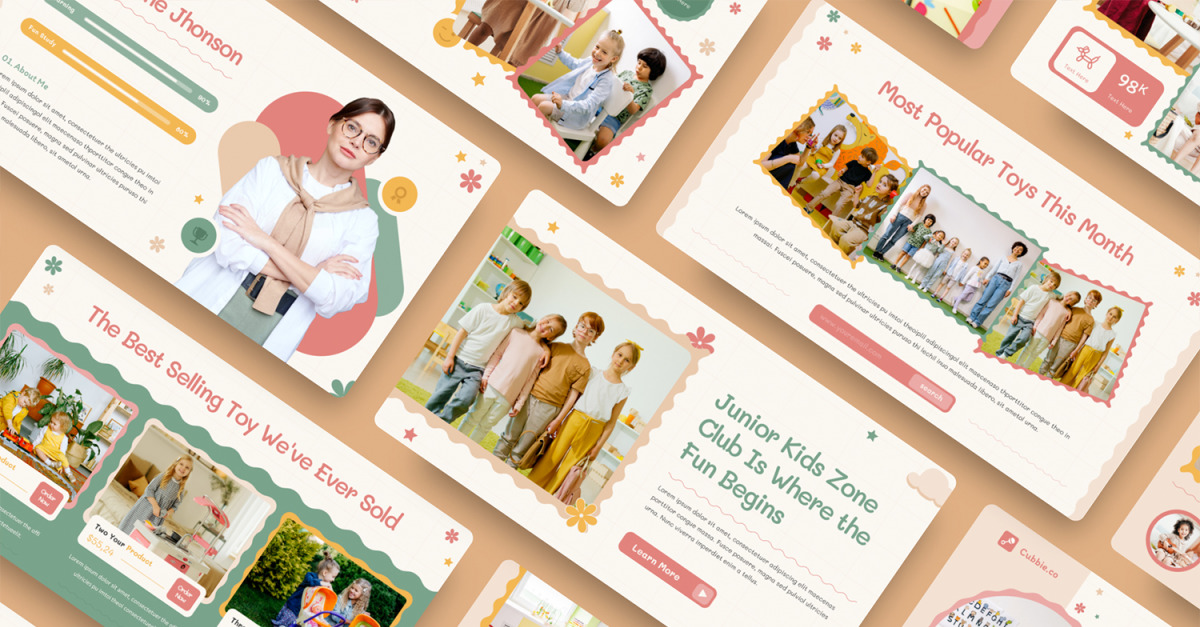 Werten Sie Ihre Präsentationen mit unserer durchdachten Cubbie-Präsentationsvorlage für Kinder und Babys auf, die die Bedeutung der frühkindlichen Bildung und die lebendigen Aktivitäten, die in Ihrer Einrichtung angeboten werden, wirkungsvoll hervorhebt. Diese Vorlage ist ideal, um Ihre Programme hervorzuheben, Erfahrungsberichte zu teilen und ansprechende Inhalte auf visuell ansprechende Weise zu präsentieren.