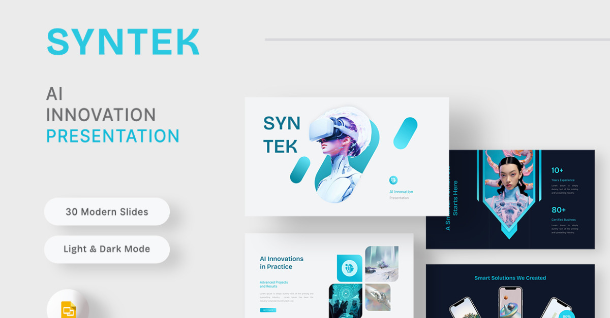 Mit 30 modernen Folien hilft Ihnen Syntek dabei, KI-Konzepte, Produktmerkmale, Forschungsergebnisse und Technologiestrategien klar und verständlich zu präsentieren.