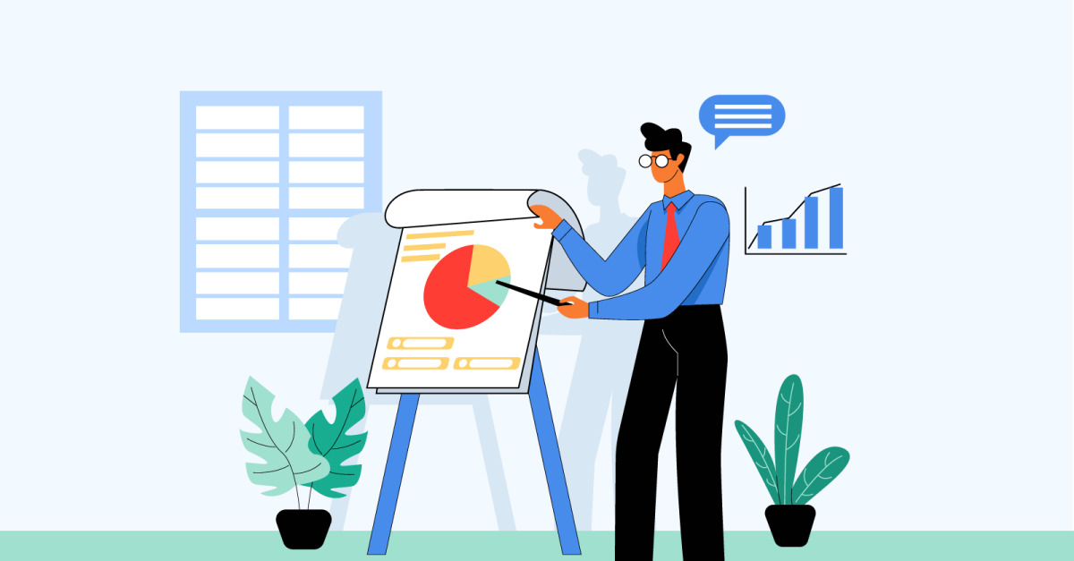 Geschäftsmann an einem Präsentations-Geschäfts-Illustrations-Konzept-Vektor