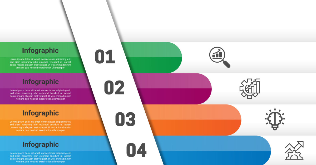 Vektor-Illustration-Infografik-Design-Vorlage mit 4 Optionen oder Schritten. Kann für Prozesse, Präsentationen, Layout, Banner, Infograph-Prozessdiagramme verwendet werden,