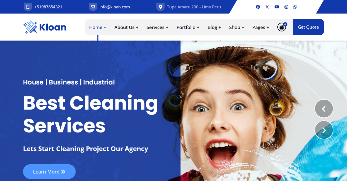Kloan ist ein professionell gestaltetes Joomla-Template mit moderner Technologie, ideal für Reinigungsunternehmen. Dank seiner Vielseitigkeit eignet es sich ideal für die Bewerbung von Dienstleistungen wie Büro-, Haus-, Fenster- oder Bodenreinigung und ermöglicht gleichzeitig den Online-Verkauf verwandter Produkte. Mit einem Live-Editor, voreingestellten Farben, vordefinierten Headern und einem Layout-Builder ist Kloan hochgradig anpassbar und ermöglicht Ihnen die schnelle Erstellung einer funktionalen Website. Es ist die perfekte Lösung für jedes Reinigungsunternehmen, das einen professionellen und effektiven Online-Auftritt sucht.