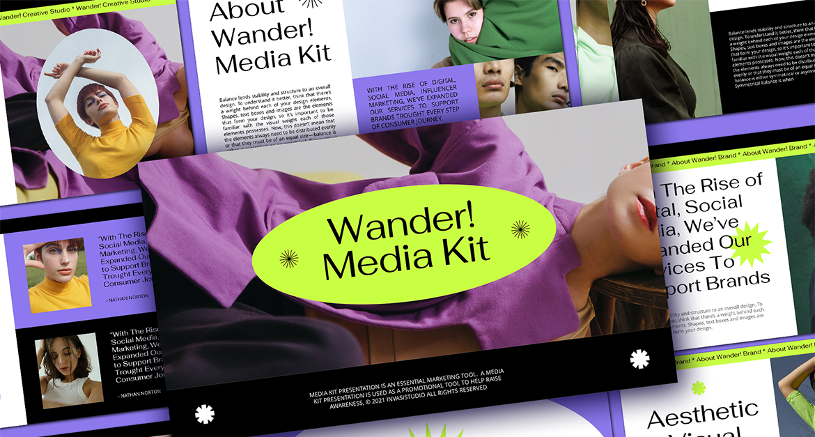 Wandern! Medienkit-Präsentation bringt neue Vibes von Präsentationsvorlagen. Interaktiver mit modernem und mutigem Design-Layout. Erstellen Sie mit wenigen Klicks atemberaubende Präsentationsvorlagen mit 60 Design-Folien, die mit Master Slide erstellt wurden.
