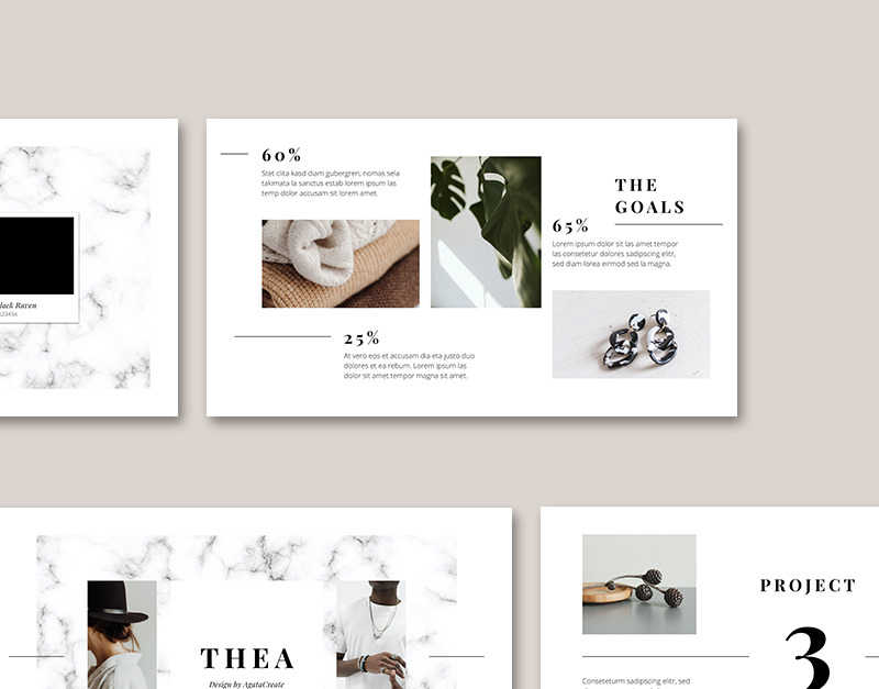 Die THEA-Vorlage ist vollständig editierbar, sodass Ihnen das vielseitige Layout viele kreative Möglichkeiten bietet. Fügen Sie einfach Ihre Texte hinzu, ziehen Sie Ihre Bilder in die Platzhalter, ändern Sie die Farbe mit wenigen Klicks und schon kann es losgehen – überzeugen Sie Ihre Kunden, Partner und potenziellen Kunden mit diesem minimalistischen, modernen und ausdrucksstarken Design.