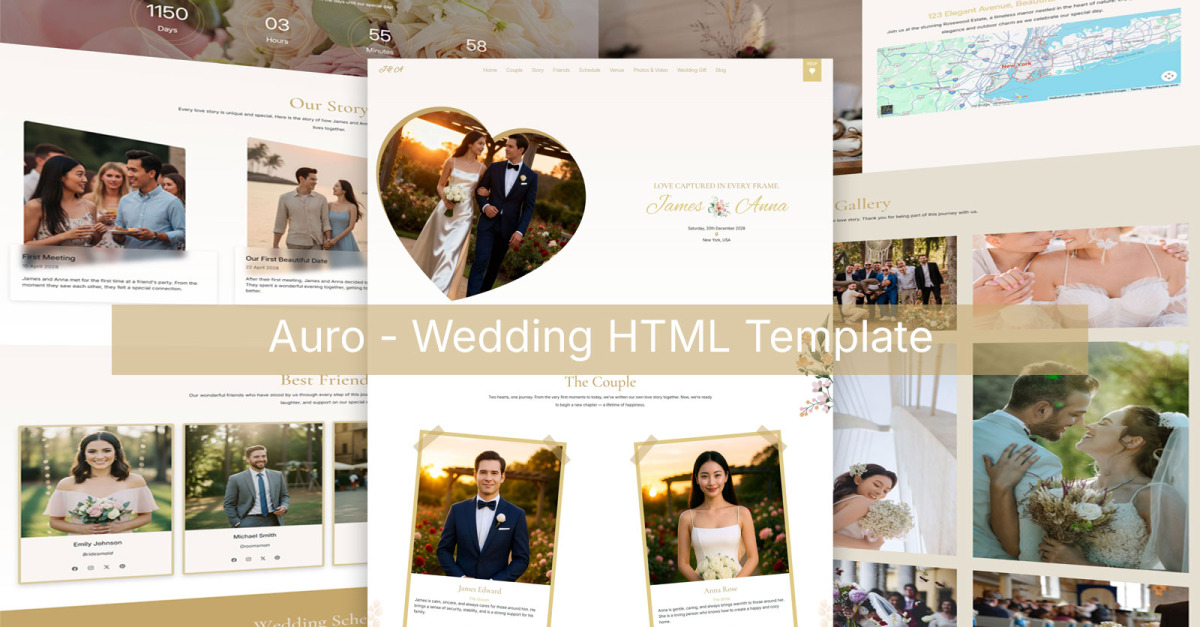 Feiern Sie Liebe und Eleganz mit Auro – dem ultimativen HTML5-Template für moderne Hochzeiten und zeitlose Events.