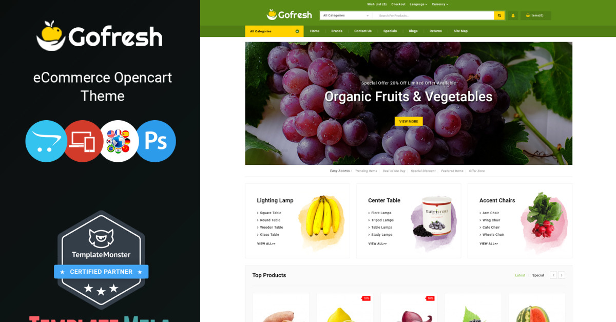 Gofresh - OpenCart-Vorlage für Lebensmittelgeschäfte und Obst- und Gemüseläden