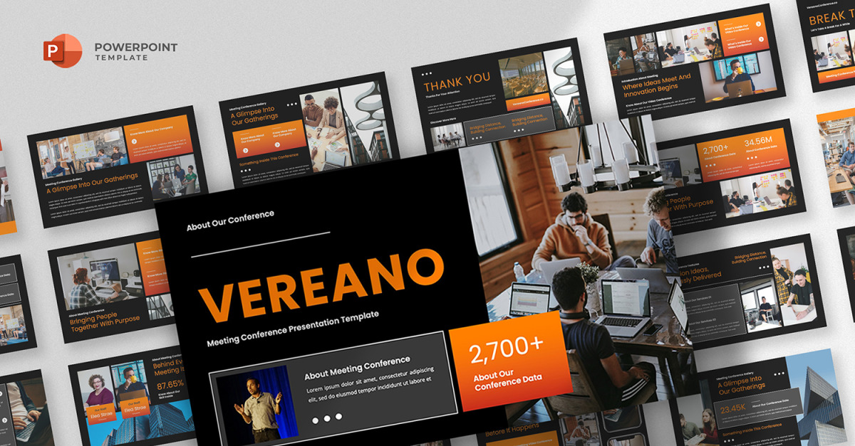 Vereano wurde für vielseitige Einsatzmöglichkeiten entwickelt und eignet sich ideal für Geschäftskonferenzen, Jahrestagungen, akademische Symposien, Produktpräsentationen, Startup-Demos, Branchenforen, Führungskräftetreffen und Firmenschulungen. Das moderne Designsystem ermöglicht es Ihnen, Daten, Erkenntnisse und Strategien in einer klaren und ansprechenden visuellen Sprache zu kommunizieren.