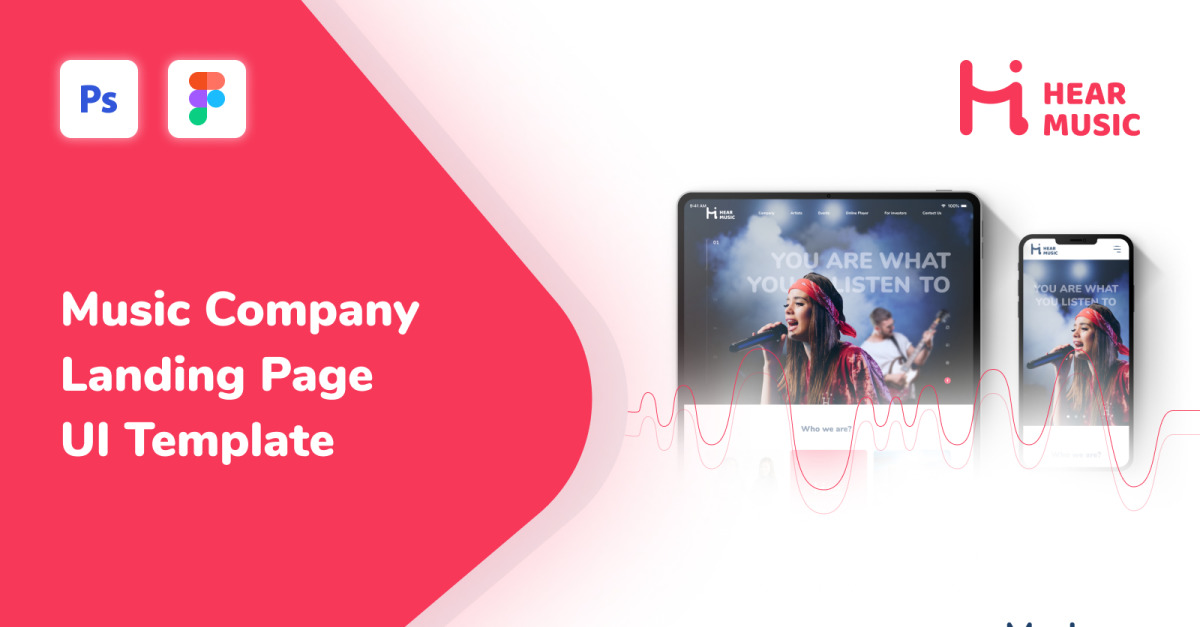 Hören Sie Musik - Responsive Modern Landing Page UI-Vorlage von Music Company