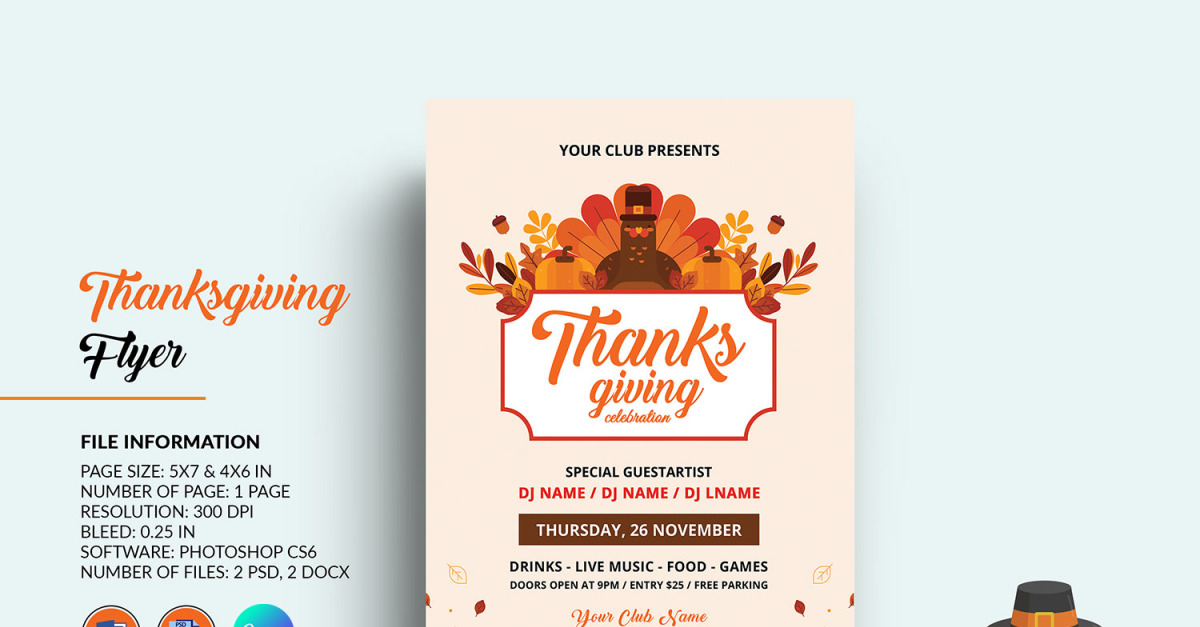 Flyer-Vorlage für die Einladung zur Thanksgiving-Feier