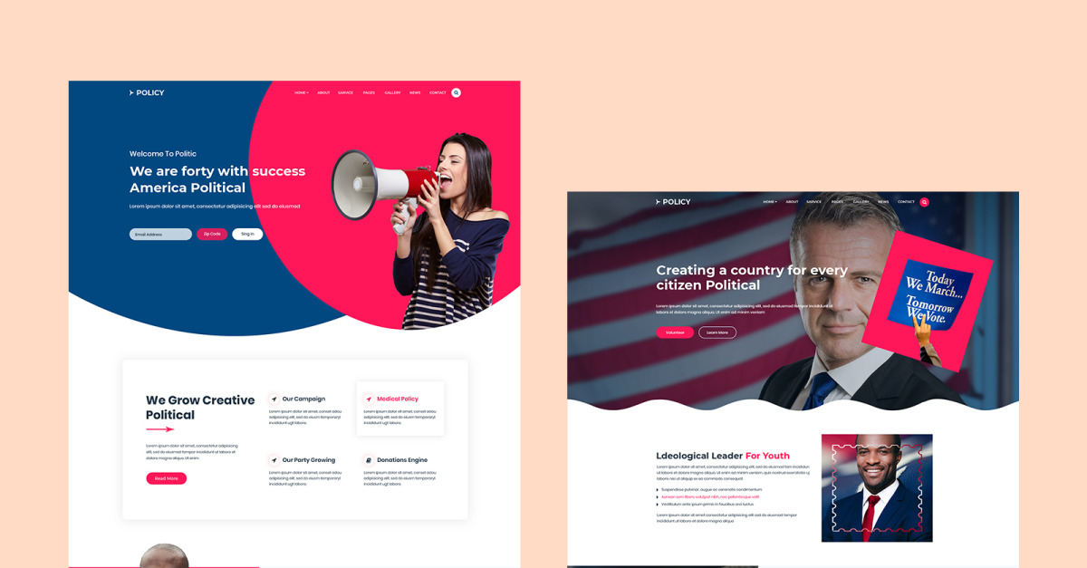 Richtlinie – Politische HTML-Vorlage ist eine vollständig responsive Beratungsvorlage, die auf Bootstrap4 x, HTML5, CSS3, JavaScript, jQuery basiert. Es handelt sich um eine modern gestaltete HTML5-Vorlage, die für die Beratungswebsite verwendet werden kann. Dies ist hochgradig anpassbar – sieht auf Tablets und Mobilgeräten großartig aus. Wir haben einen Dokumentationsordner zur Beschreibung der Codestrukturen beigefügt. Wir haben Best Practices der Webentwicklung integriert – Sie können ein großartiges Website-Layout basierend auf Bootstrap oder Grid 1170px erstellen.