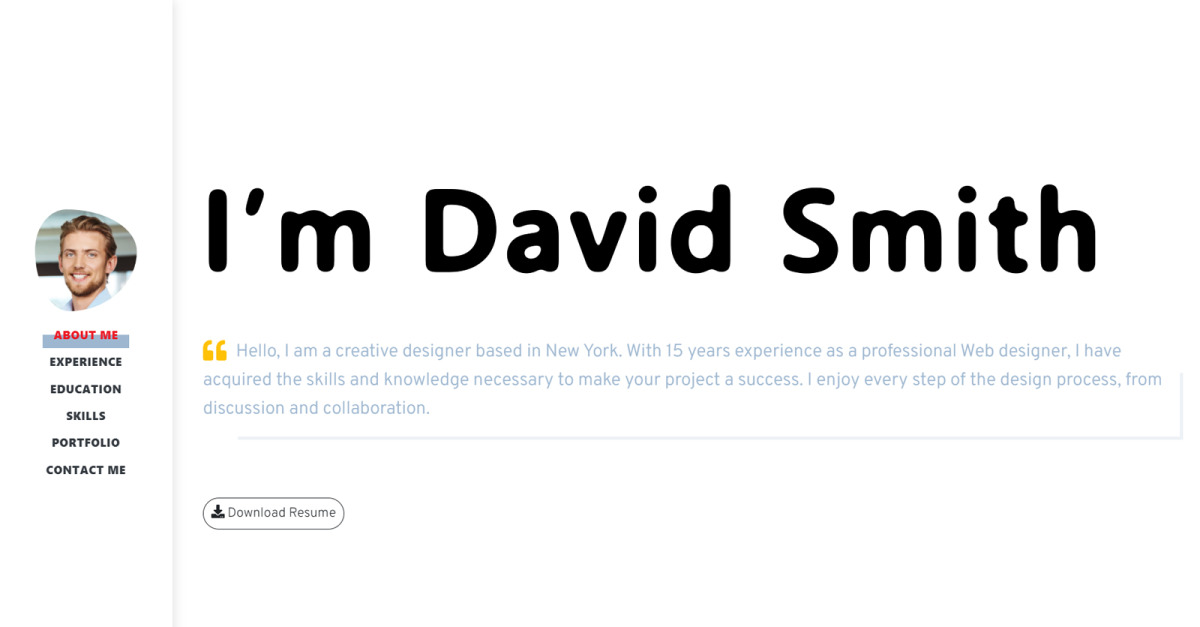 Mit dieser einzigartigen persönlichen HTML-Vorlage für Ihren Online-Lebenslauf können Sie sich von Ihrer Konkurrenz abheben.