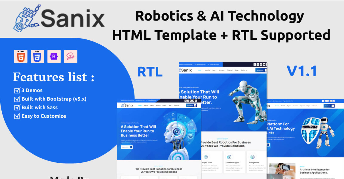 Sanix – HTML-Vorlage für Robotik und KI-Technologie + RTL unterstützt