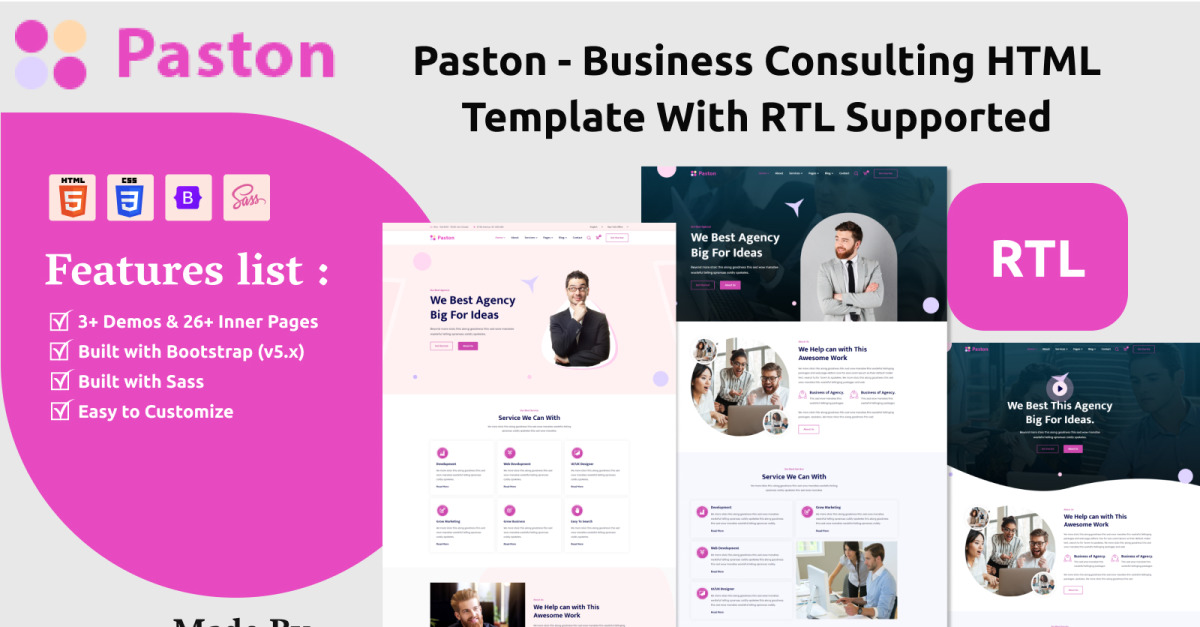 Paston – HTML-Vorlage für Unternehmensberatung mit RTL-Unterstützung