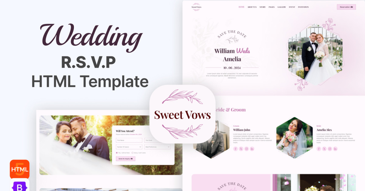 Sweet-Vows ist die perfekte HTML-Vorlage für Paare, die eine atemberaubende digitale Hochzeitseinladung oder Event-Website erstellen möchten. Das romantische Design, die anpassbaren Funktionen und die benutzerfreundliche Oberfläche machen es einfach, Ihre Liebesgeschichte und Hochzeitsdetails auf unvergessliche Weise mit Ihren Gästen zu teilen. Egal, ob Sie eine große, traditionelle Hochzeit oder eine kleine, intime Zeremonie planen, Sweet-Vows bietet alle Tools, die Sie benötigen, um eine wunderschöne Online-Präsenz zu erstellen, die Ihren besonderen Tag widerspiegelt. Vom responsiven Layout bis hin zu den integrierten RSVP-Formularen und der Fotogalerie ist jede Funktion darauf ausgelegt, Ihr Hochzeitserlebnis zu verbessern und Ihren Gästen das Gefühl zu geben, mit Ihrer Feier verbunden zu sein. Mit Sweet-Vows können Sie sicherstellen, dass Ihre Hochzeitswebsite so einzigartig und unvergesslich ist wie Ihre Liebesgeschichte.