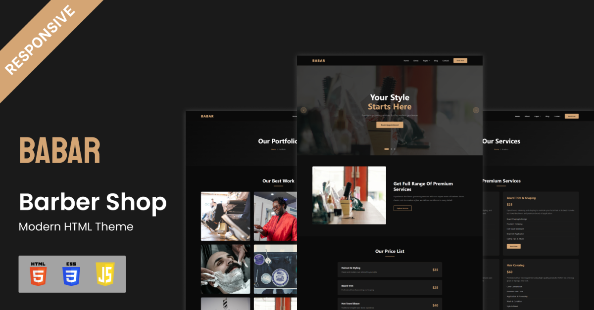 Das Barber Shop Modern HTML Theme eignet sich ideal für klassische Barbershops, moderne Pflegestudios, luxuriöse Herrenlounges und freiberufliche Barbiere, die eine stilvolle, leistungsstarke und vertrauenswürdige Online-Präsenz wünschen.