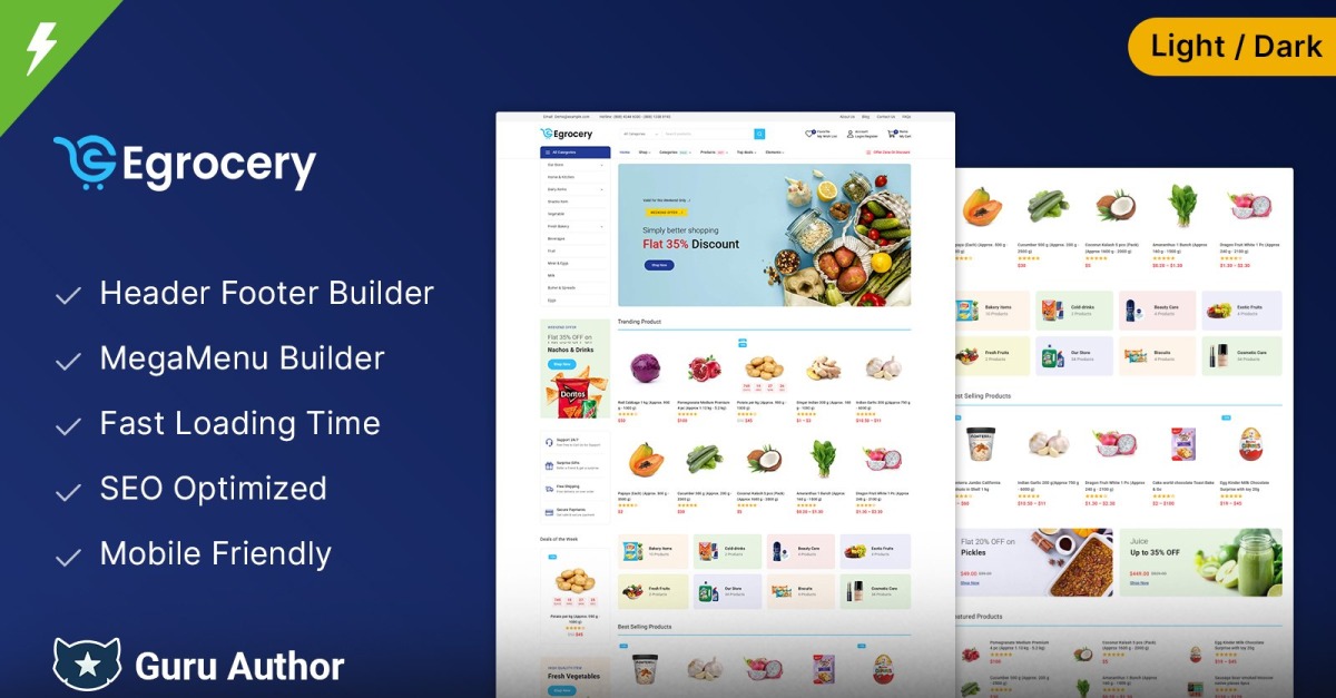 Mit seinem modernen Design, den robusten Funktionen und der mühelosen Anpassung ist eGrocery das perfekte WooCommerce-Theme für den Aufbau eines professionellen und hochfunktionalen Online-Lebensmittelgeschäfts. Ob Sie ein neues Geschäft eröffnen oder einen bestehenden Shop modernisieren, dieses Theme sorgt für ein nahtloses und ansprechendes Einkaufserlebnis. Holen Sie sich eGrocery noch heute und verkaufen Sie frische, schnelle und effiziente Produkte!