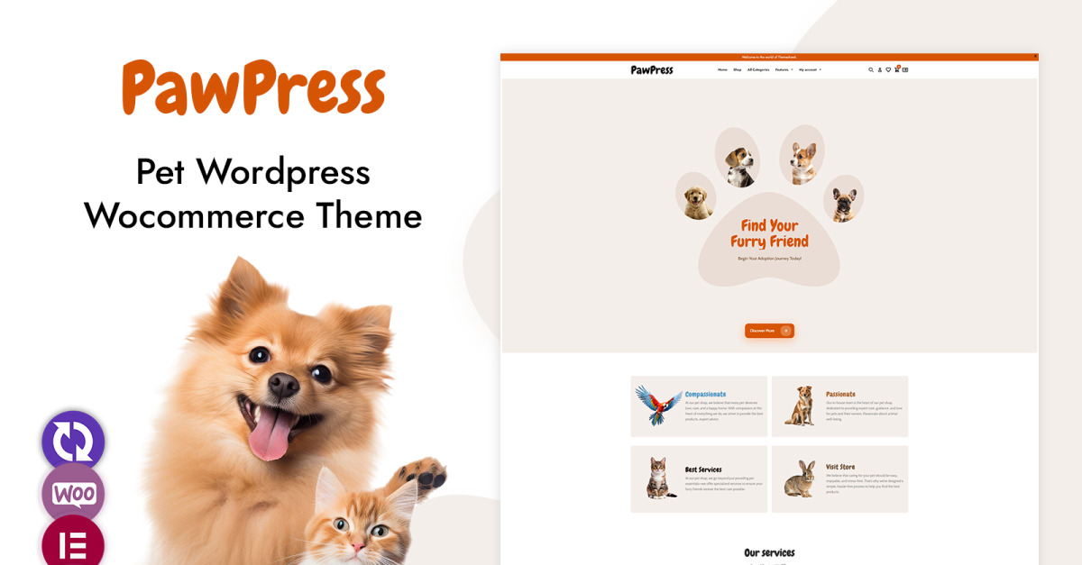 Geben Sie Ihrem Tiergeschäft mit PawPress – Pet WordPress WooCommerce Theme die Online-Präsenz, die es verdient.