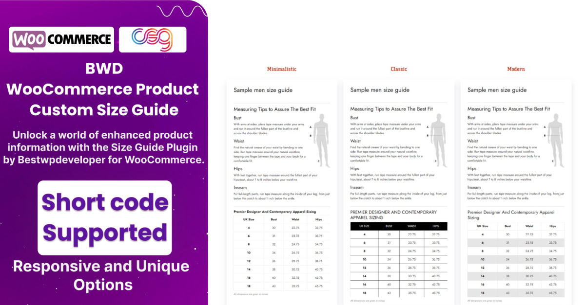 BWD Product Custom Size Guide WordPress-Plugin für WooCommerce