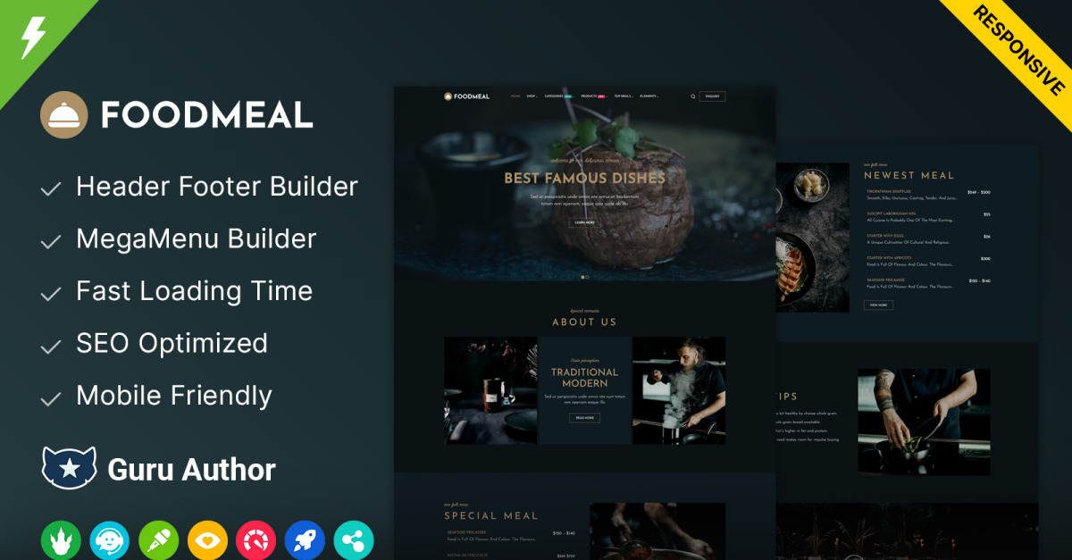 FoodMeal ist mehr als nur ein Theme – es ist eine Komplettlösung für Unternehmen der Lebensmittelbranche, die eine ansprechende und funktionale Website erstellen möchten. Ob Sie die Speisekarte Ihres Restaurants präsentieren, Online-Bestellungen anbieten oder Sonderangebote bewerben möchten – FoodMeal bietet Ihnen die Tools für Ihren Erfolg.