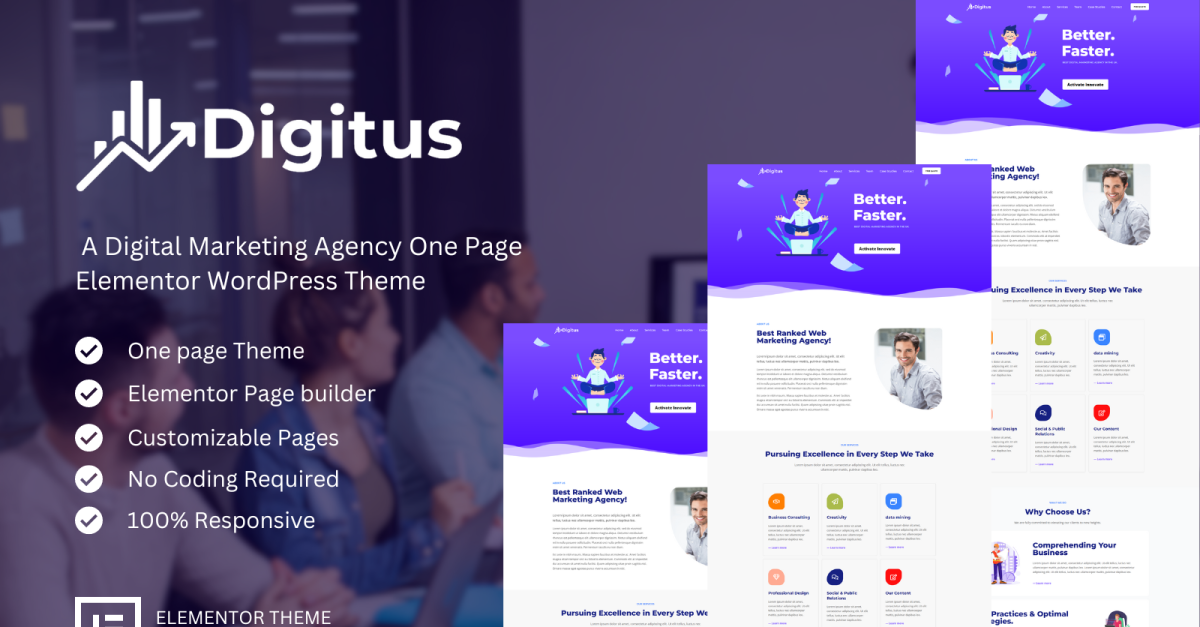 Wir stellen Digitus vor – ein dynamisches einseitiges WordPress-Theme, das für digitale Marketingagenturen entwickelt wurde. Digitus bietet ein klares, modernes Design, das Ihre Dienstleistungen und Ihr Fachwissen hervorhebt. Mit der einfachen Anpassung von Elementor können Sie Ihre Site so gestalten, dass sie Ihre Marke perfekt repräsentiert und Kunden anzieht. Präsentieren Sie mit Digitus Ihre digitalen Marketingfähigkeiten und heben Sie sich auf dem wettbewerbsintensiven Online-Markt ab.