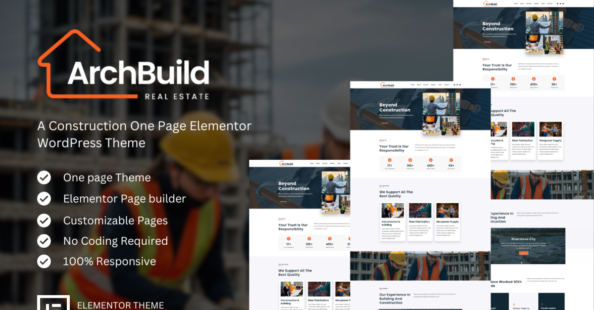 ArchBuild – Construction WordPress One Page Elementor Theme ist eine Premium-Lösung für Bauherren, Architekten und Bauunternehmer. Dieses Theme zeichnet sich durch ein elegantes, modernes Design aus, das Ihre Projekte und Dienstleistungen mit Stil präsentiert. Es ist vollständig responsive und wird von Elementor unterstützt. Es ermöglicht mühelose Anpassungen und stellt sicher, dass Ihre Site Ihre Marke perfekt widerspiegelt. Mit integrierter SEO-Optimierung und intuitiver Navigation hilft Ihnen ArchBuild dabei, eine professionelle Online-Präsenz zu erstellen, die die Kundenbindung und das Wachstum fördert.