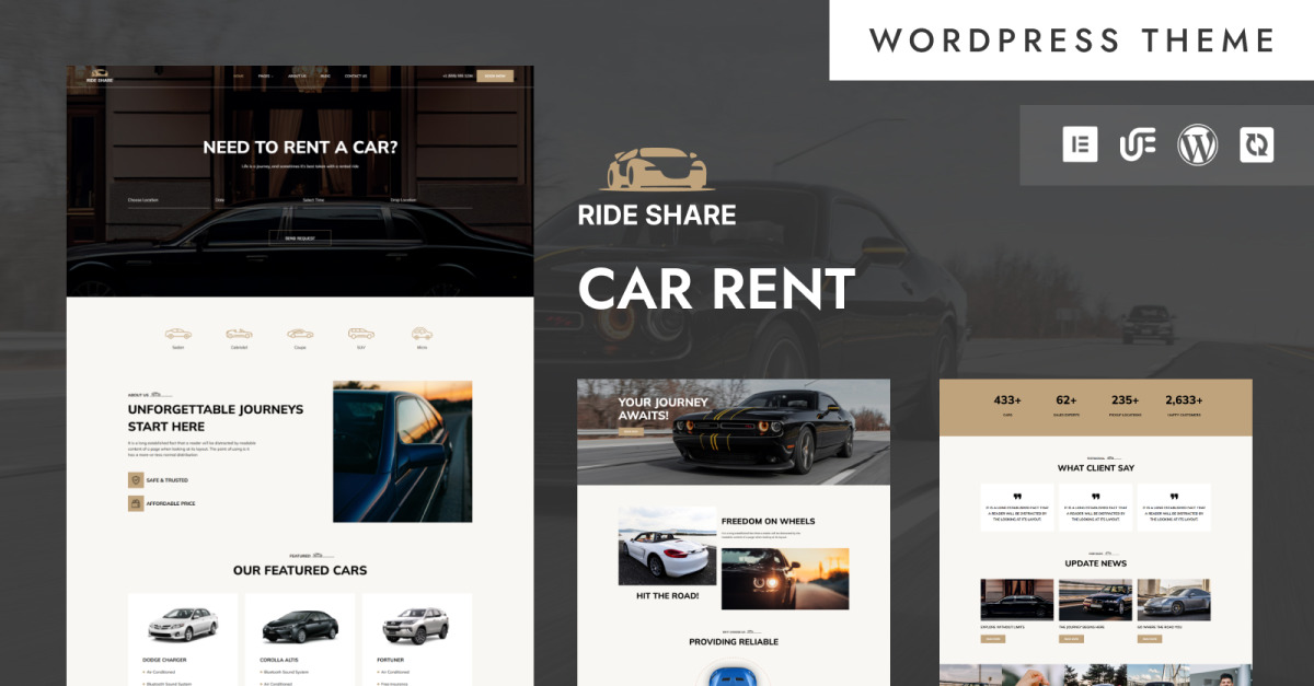 Ride Share – Autovermietung und Buchungsdienste WordPress Elementor Theme