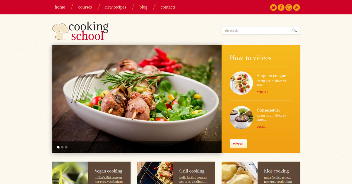 Dies ist die Wordpress-Designvorlage für die Kochschule mit Cherry Framework
