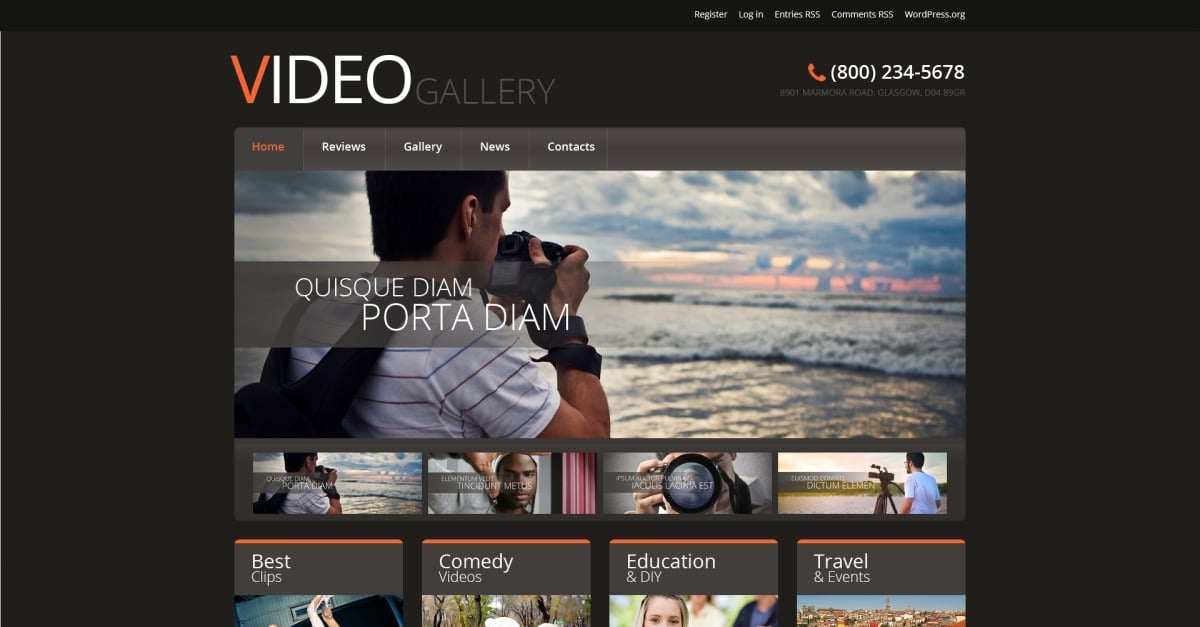 Diese Wordpress-Designvorlage für die Clips-Galerie ist suchmaschinenfreundlich