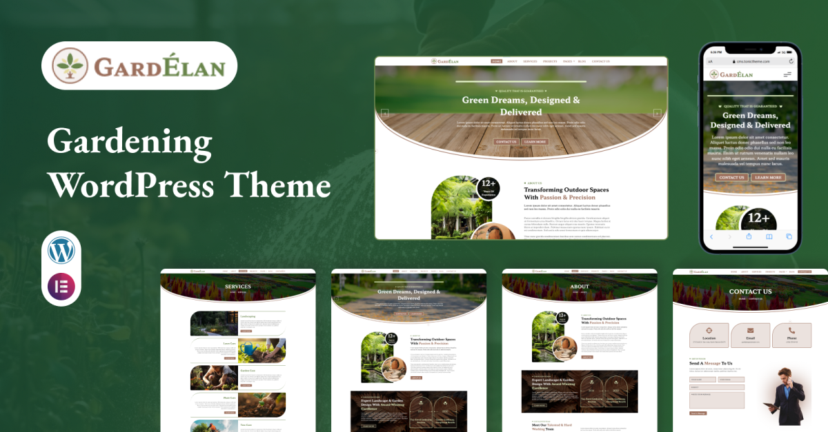 GardElan wurde mit dem Elementor Page Builder erstellt und bietet Ihnen volle Kontrolle über Layout und Design – ohne eine einzige Codezeile zu verändern. Die naturinspirierte Farbpalette und die umweltfreundliche Optik machen es perfekt, um umweltbewusste Kunden anzusprechen.