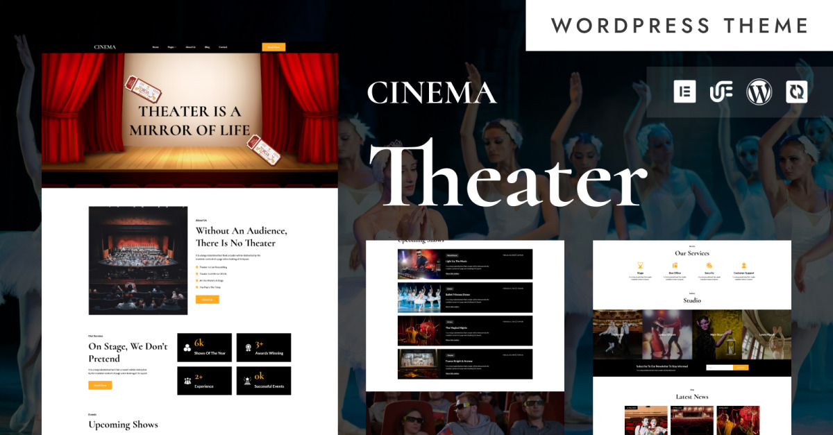 Treten Sie mit unserer Cinema Theater WordPress-Vorlage ins Rampenlicht – einer beeindruckenden und funktionsreichen Lösung, die speziell für Theater, Zentren für darstellende Künste, Schauspielschulen, Ballettkompanien, Opernhäuser und Veranstaltungsorte entwickelt wurde. Mit Präzision und künstlerischem Flair gestaltet, bietet diese Vorlage die perfekte Bühne für Aufführungen, die Begeisterung des Publikums und die einfache Organisation von Veranstaltungen.