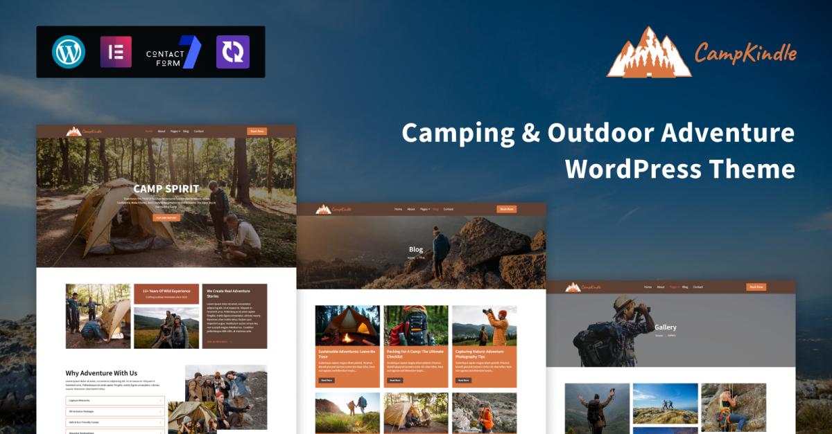 CampKindle ist ein inspirierendes und abenteuerorientiertes WordPress-Theme für Campingplätze, Outdoor-Reisebüros, Wanderclubs und Veranstalter von Abenteuerreisen. Mit seiner wilden und zugleich eleganten Ästhetik fängt es die wahre Essenz des Entdeckens ein – perfekt für Marken, die in der freien Natur erfolgreich sind.