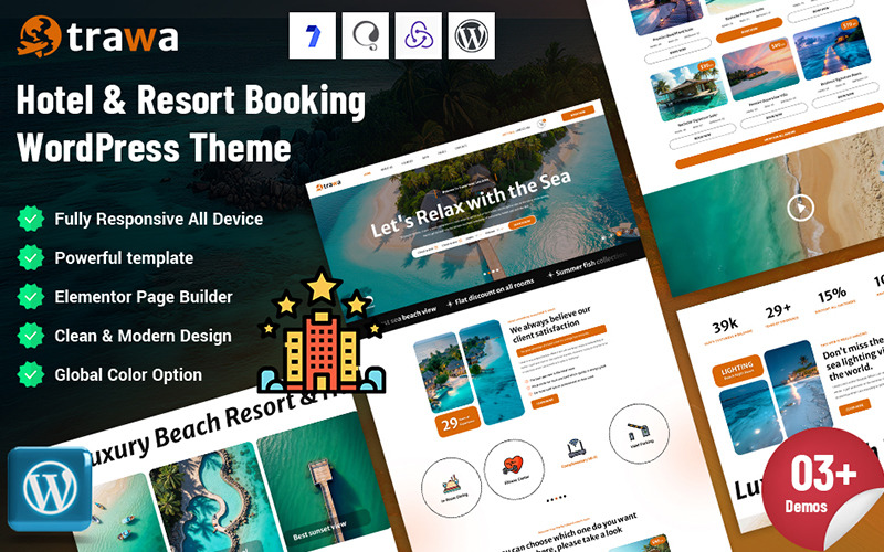 Trawa ist ein Premium-WordPress-Theme für Hotelbuchungen, das Ihr Hotelunternehmen auf ein neues Level hebt. Mit seinem eleganten und modernen Design bietet Trawa eine benutzerfreundliche Oberfläche, die es Gästen ermöglicht, mühelos Unterkünfte zu durchsuchen und zu buchen. Das Theme ist vollständig responsiv und gewährleistet so ein reibungsloses Erlebnis auf allen Geräten. Dank der anpassbaren Funktionen können Sie Ihre einzigartige Markenidentität optimal präsentieren.